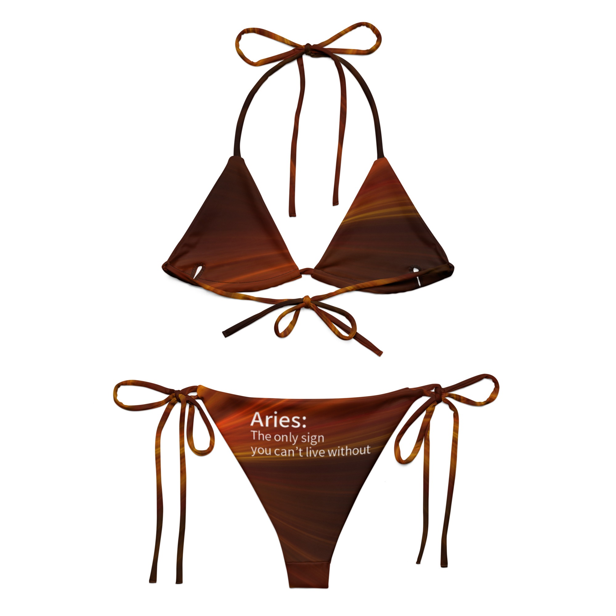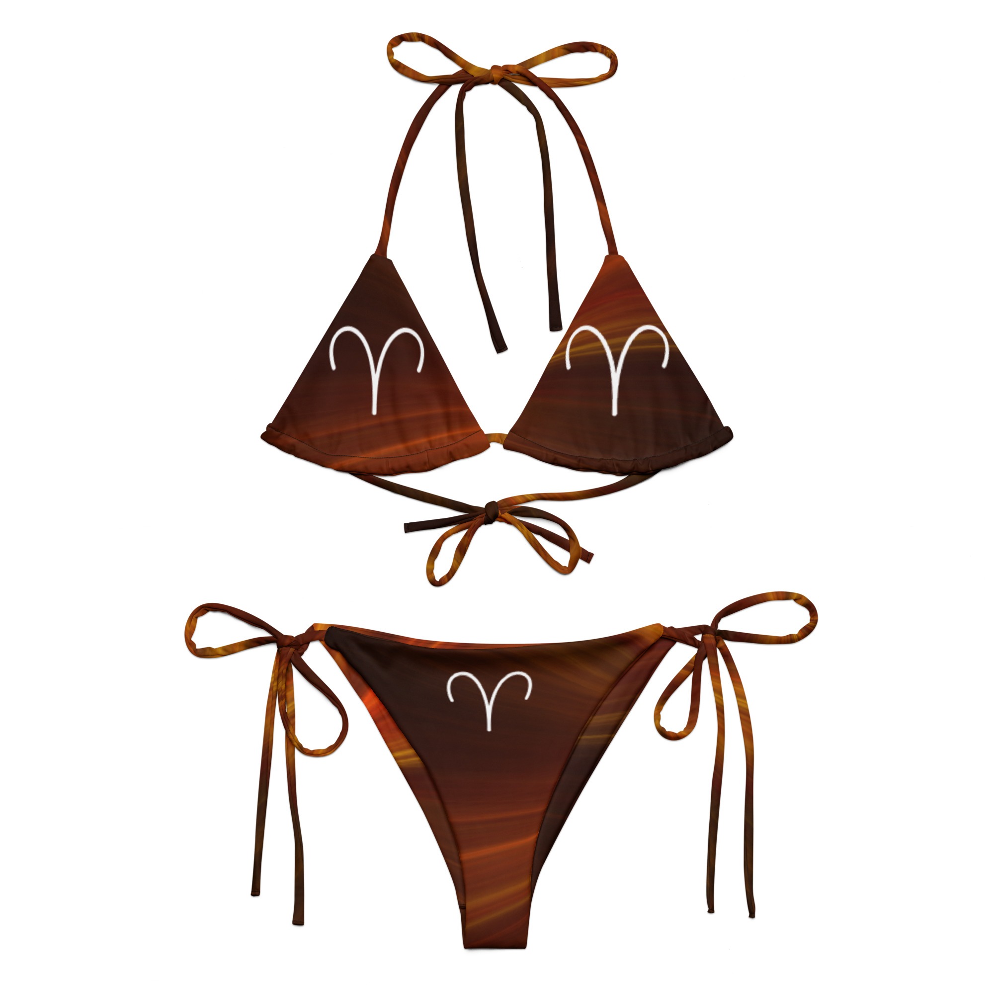 • To make your All-Over Print Recycled String Bikini last longer, thoroughly rinse it off after each use and get rid of any chlorine/salt residue.
